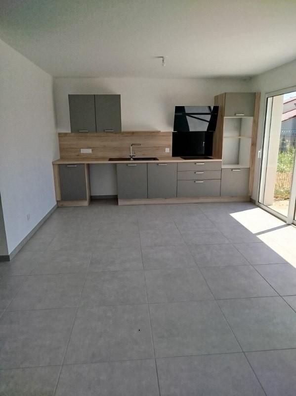 Composée au RDC d'un bel espace de vie avec une cuisine équipée d'une hotte et d'une plaque de cuisson donnant accès à une terrasse, d'une salle d'eau et d'un WC.